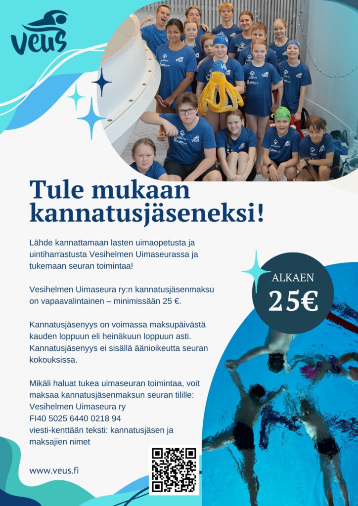 Lähde kannattamaan lasten uimaopetusta ja uintiharrastusta Vesihelmen Uimaseurassa ja tukemaan seuran toimintaa!